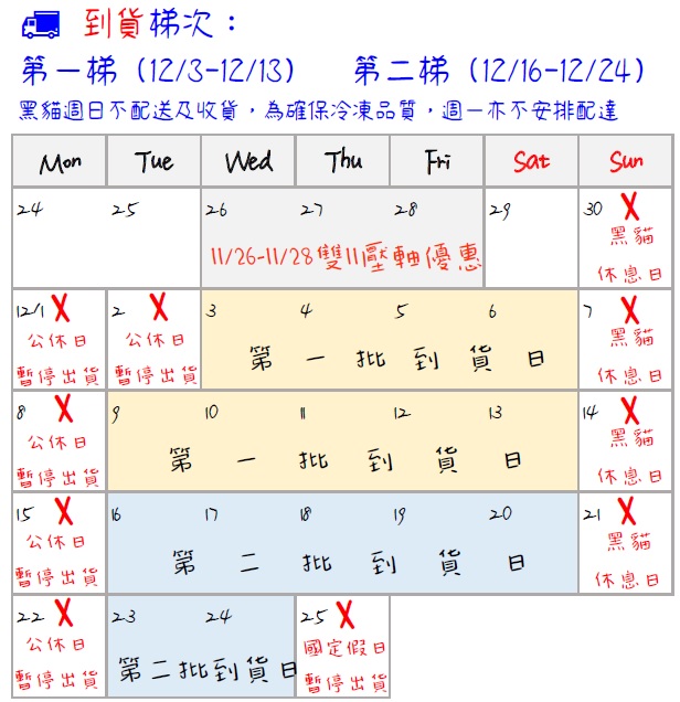 2. 以 黑貓宅急便 冷凍 配送商品。